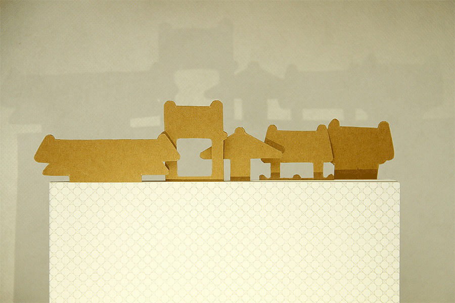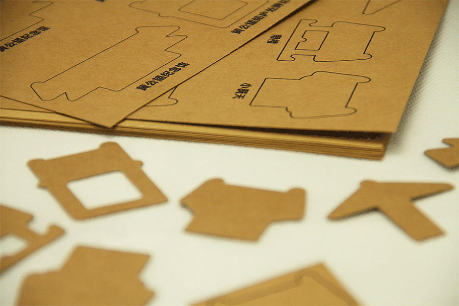 产品包装应用了“绿色包装”理念,沿包装纸上图形剪下黄公望隐居地的建筑,不仅可以作为简单的识别之物,引导小朋友重新回顾旅程,也可作为书签来使用。