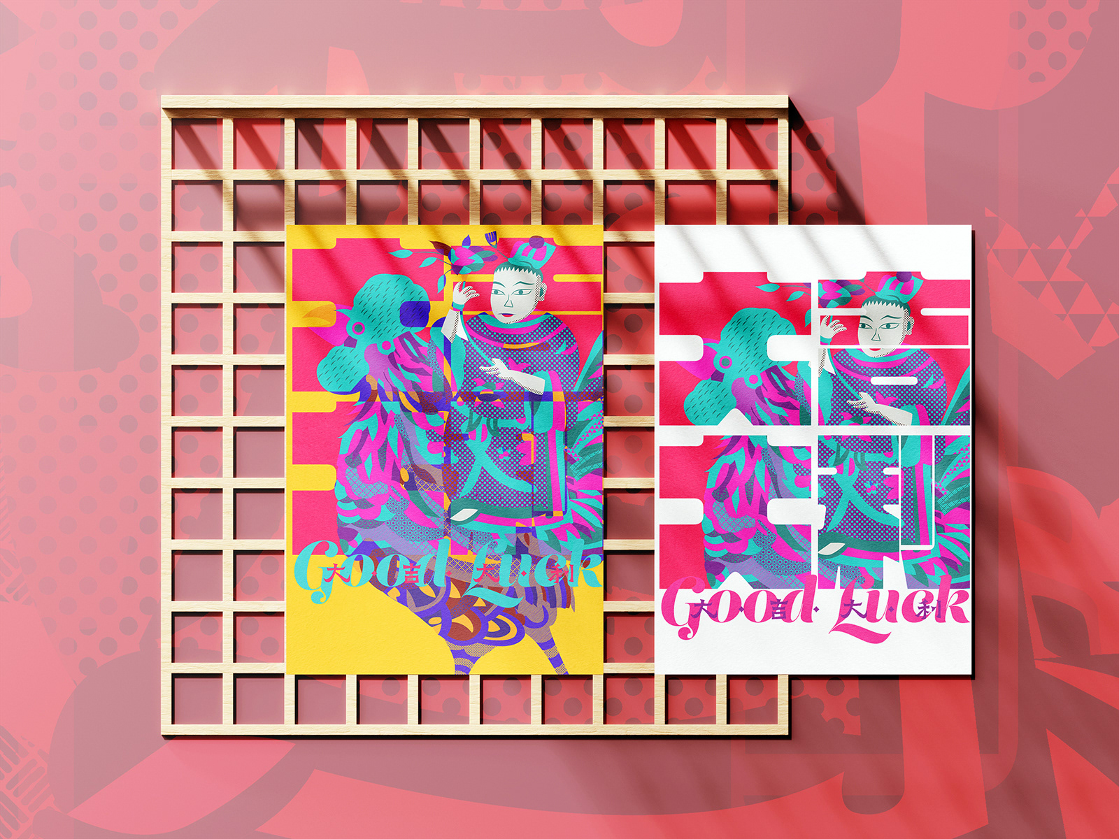 基于开封市博物馆所藏的朱仙镇“大吉大利”木版年画衍生,“千年风雅打开宋潮”宋文化创意产品设计大赛优秀奖,“纹藏国际纹样设计大赛”入围奖。